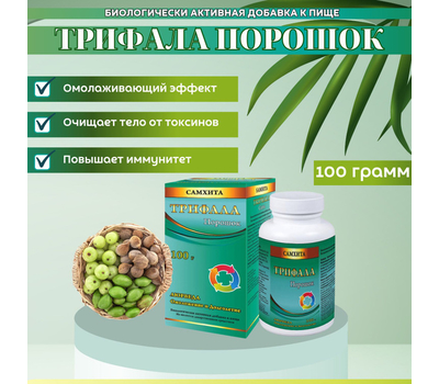 Трифала представляет собой травяной сбор в виде мелкодисперсного порошка готового к употреблению. В состав средства входят три главных аюрведческих продукта: амла, харитаки и бибхитаки. Первый – это индийский крыжовник, натуральный антиоксидант и чемпион по содержанию витамина С. Харитаки – культура, произрастающая в Индии и известная своим благотворным влиянием на пищеварительную систему. Бибхитаки – растение с сильным омолаживающим эффектом. Комбинация этих трех компонентов делает препарат максимально эффективным и при этом безопасным, так как в его основе только природные компоненты. Трифала способна выводить из организма токсины, очищать ткани, избавляться от «старых» шлаков. Средство рекомендовано при заболеваниях кишечника и желудка в качестве дополнения к основной терапии.