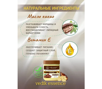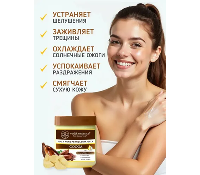 Косметический вазелин Vedic Essence с маслом Какао и витамином Е Роскошь природы для вашей кожи Вазелин Vedic Essence — это настоящий эликсир красоты, созданный на основе натуральных компонентов.